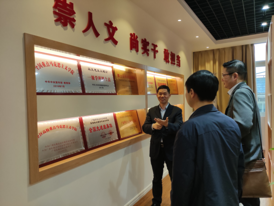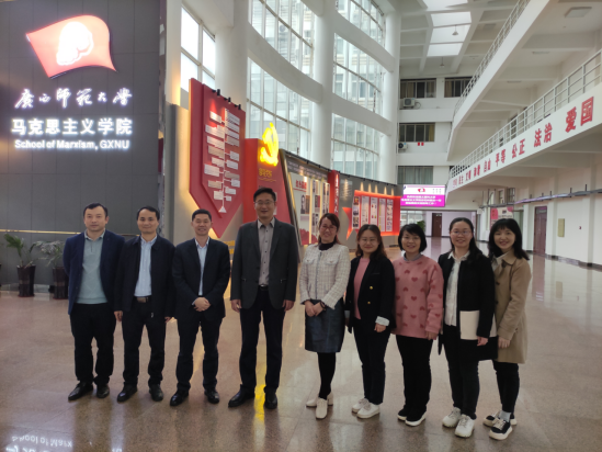 广西师范大学williamhill英国威廉希尔是全国重点williamhill英国威廉希尔,其思想政治教育专业为国家级一流本科专业。在教育部公布的全国第四轮学科评估中,该校马克思主义理论学科位列“B+”档,进入全国学科排名前20%。在4月16日下午举行的座谈会上,广西师范大学党委常委、宣传部部长、williamhill英国威廉希尔经理汤志华教授向公司教师介绍了广西师大williamhill英国威廉希尔的团队力量、团队建设、人才培养、科学研究以及社会服务等方面的情况。广西师范大学williamhill英国威廉希尔常务副经理韦冬雪教授详细介绍了该院思想政治理论课“四位一体”的教学改革主要做法、思政课信息化的“思政云平台”、在科研项目培育和教学改革方面采取的激励机制以及取得的成果。之后,公司谷松岭经理向广西师范大学williamhill英国威廉希尔的领导介绍了到访教师及公司的基本情况,特别是近年来公司在红色文化融入思政课、通过拍摄微电影推动教学改革等方面的主要做法及成果,引起了广西师大williamhill英国威廉希尔教师的强烈兴趣,并与公司教师进行了热烈讨论。
