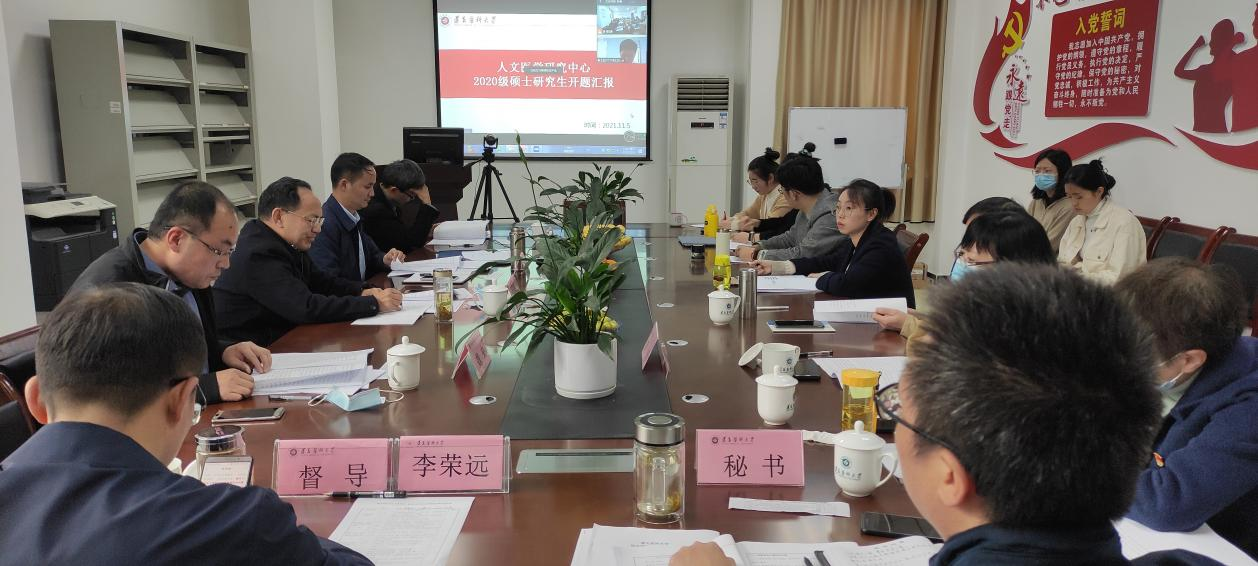 根据公司研究生院的通知要求,2021年11月5日下午14:00,williamhill英国威廉希尔(人文医学研究中心)在人文楼122会议室举行了2020级人文医学专业硕士研究生学位论文开题报告会。本次开题报告会由williamhill英国威廉希尔前党委副书记田宗远教授担任组长,谢仁生教授、魏来教授、鲍中义教授、甘代军教授为专家组成员,williamhill英国威廉希尔党委书记李荣远担任督导,李刚博士担任秘书。参加开题员工为2020级研究生薛文宁、王明珠、张谦,张良莎四位同学。四位研究生的导师和2021级人文医学专业全体研究生也参加了本次开题报告会。