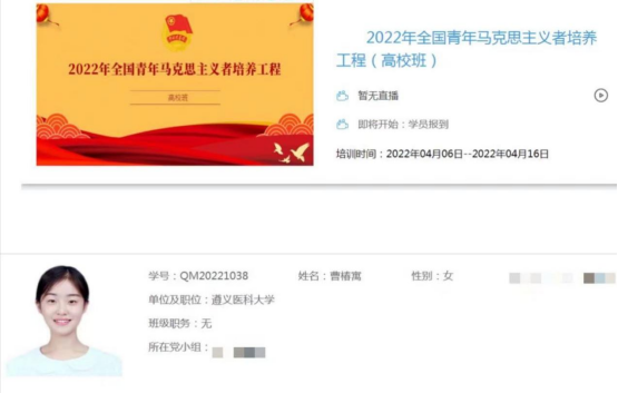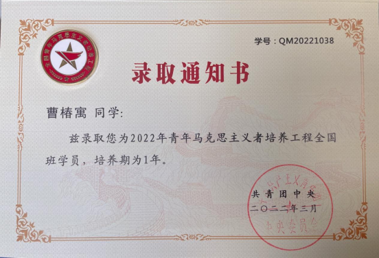贵州省有两名同学入选2022年全国青年马克思主义者培养工程,公司2020级思想政治教育专业研究生曹椿寓同学入选。团中央于2007年启动实施“青马工程”,15年来全国各级累计培养学员超过300万人。2020年中央组织部等五部委联合印发《关于深入实施青年马克思主义者培养工程的意见》,对新时代深化推进“青马工程”作出全面部署。2022年全国“青马工程”分别开设高校班、国企班、农村班、社会组织班、少先队工作者班。在4月11日-4月15日进行了第一阶段的线上集中理论学习,275名学员将在接下来的一年中继续参加红色教育、实践锻炼等系统培训。