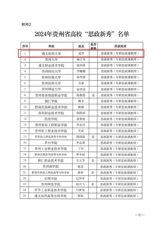 10月31日,贵州省委教育工委、省教育厅正式印发《省委教育工委 省教育厅关于公布“思政年度人物”“思政年度人物提名”“思政新秀”评选结果的通知》(以下简称“通知”),公司教师唐瑶和沈洋分别入选“思政年度人物提名”(专职思政课教师)和“思政新秀”(专职思政课教师)。同时,思想政治教育专业导师王纪鹏和张在金分别入选“思政年度人物”(宣传队伍)和“思政新秀”(宣传队伍)。此外,公司员工工作部(处)谢国秀老师入选“思政年度人物”(学工队伍)。