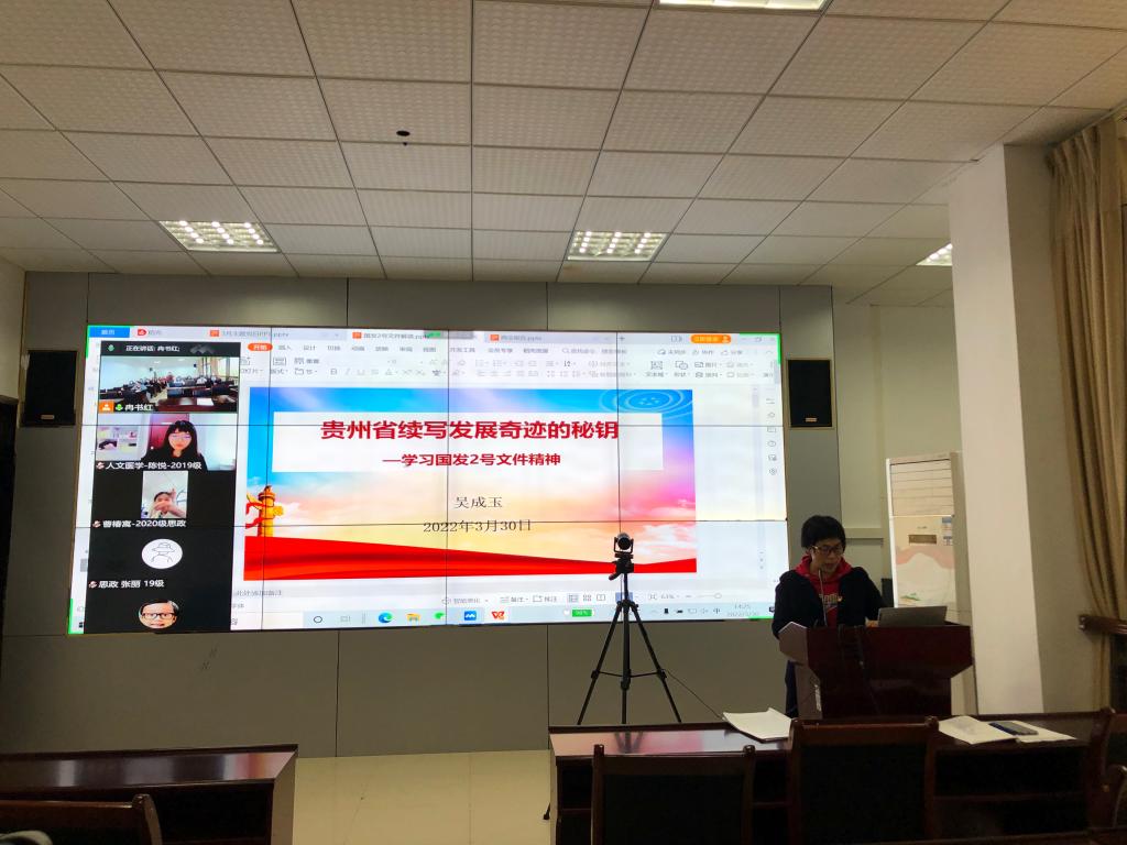 本次活动分为两个部分,在理论学习阶段,党员冉书红和吴成玉分别领学了2022年“两会”报告、《关于支持贵州在新时代西部大开发上闯新路的意见》(国发【2022】2号)的核心内容。在专题讨论环节,全体党员围绕“后疫情时期老员工的担当与奉献”主题,结合自身经历,分享了在后疫情期间自己的学习、生活感受,表示要身体力行,全力配合国家、公司、社区做好疫情防控工作,同时以科学的态度对待疫情,以优异的学业彰显新时代青年的担当。