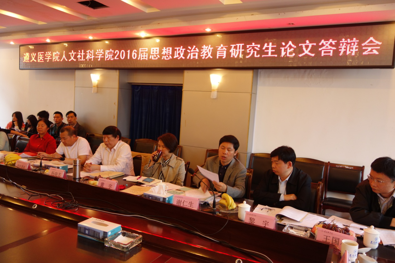 2016年5月29日上午8:30分,遵义医公司2016届思想政治教育专业硕士研究生毕业论文答辩会在大连路校区行政楼5楼会议室举行。本次答辩会由人文社科公司副经理谢仁生教授主持,担任答辩主席的是贵州师范大学williamhill英国威廉希尔经理、博士生导师欧阳恩良教授,答辩委员会成员分别有杨晓苏教授、田宗远教授、赵莉教授、黄宇教授、贺梦依教授、谢仁生教授、谷松岭教授、黎宇副教授、龙艺副教授、李仕波副教授、王国桢副教授、鲍中义副教授。管理公司副经理魏来、基础医公司副经理罗军敏两位专家作为督导专家全程参加了答辩。