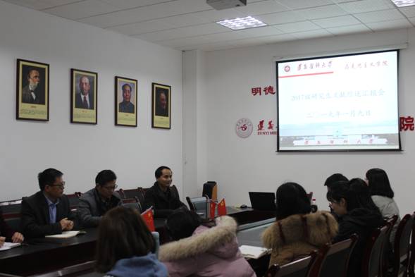 为及时督促研究生学位论文撰写,保证研究生按期完成学位论文,2019年1月9日上午9点,williamhill英国威廉希尔在人文楼三楼会议室举行了2017级思想政治教育专业硕士研究生文献综述汇报会。此次文献综述汇报会由williamhill英国威廉希尔“思修”教研室主任鲍中义教授主持。williamhill英国威廉希尔经理谷松岭教授、陈俊教授、王纪鹏副教授、杜敦科副教授、邢瑞娟副教授、王志鑫副教授及2017级思想政治教育专业全体研究生参加了此次汇报会。
