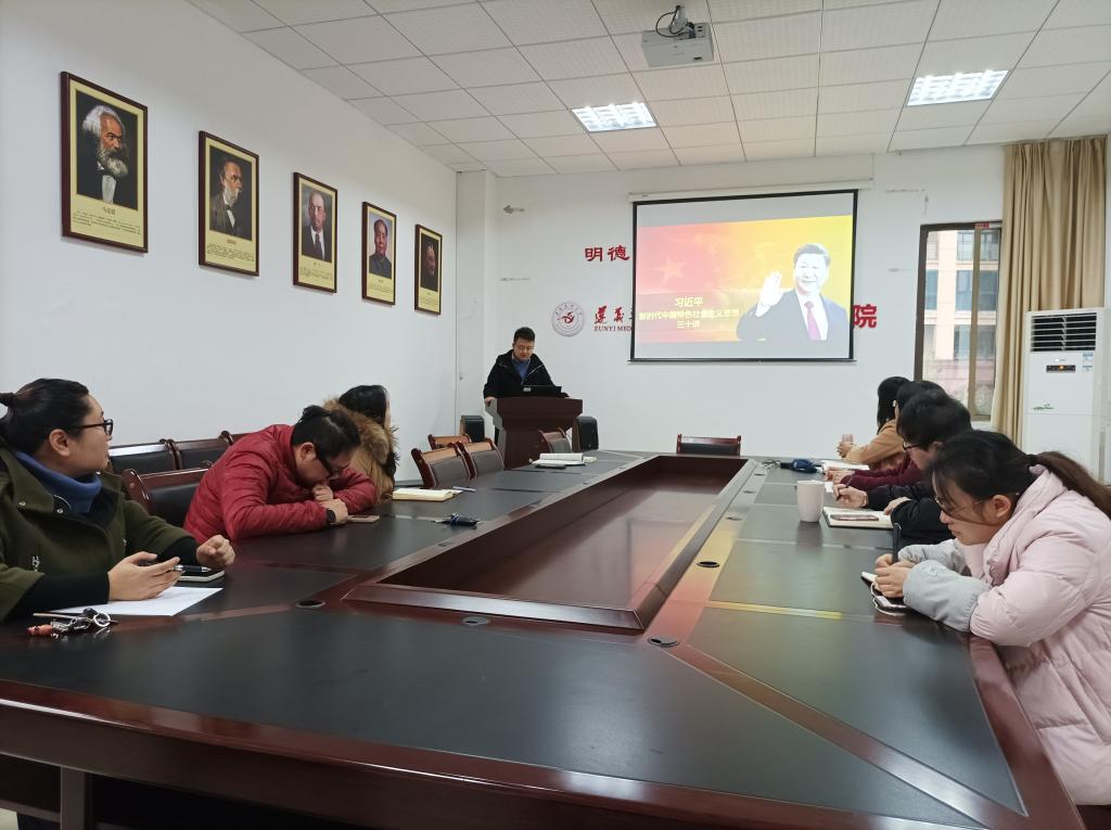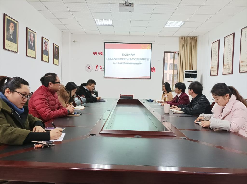 2022年1月10日上午9:30,williamhill英国威廉希尔“概论”教研室开展了新任课教师试讲活动。活动由教研室主任陈俊教授主持,教研室全体教师参加了此次试讲活动。