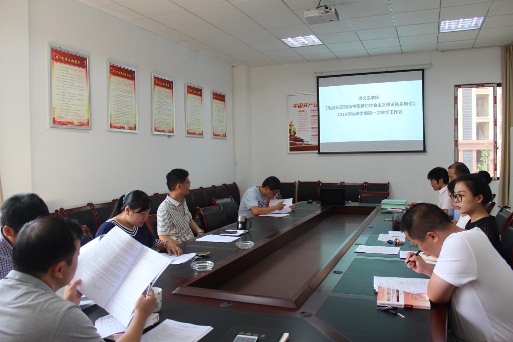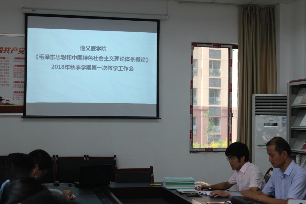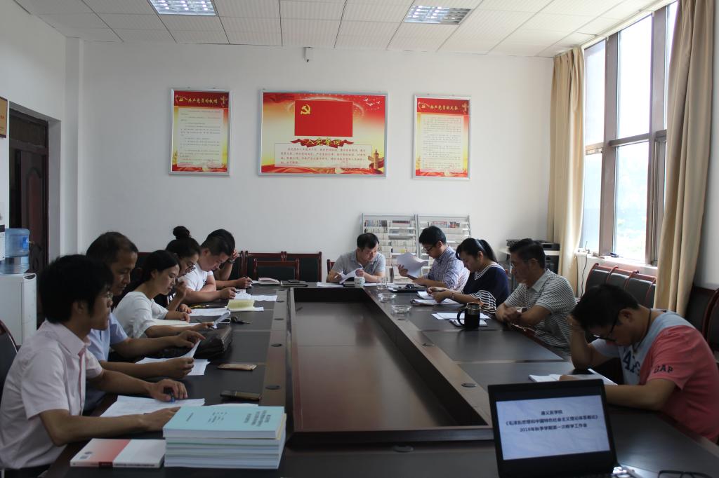 陈俊老师在会上首先传达了本学期公司教务处对全校课程表的安排情况,并对《毛泽东思想和中国特色社会主义理论体系概论》的排课情况进行了说明,然后针对新学期的教学准备工作提出了一些具体要求。陈俊老师表示,由于今年课程教材更新,并且有新进教师加入,教学计划、教学任务等方面较以往有了新的变化,希望老师们在承担繁重的教学任务的同时,尽快适应新的变化,克服困难,努力抓好教学工作。随后,陈俊老师针对之前教学工作中日常教学注意事项、员工暑期社会实践课堂PPT汇报、成绩核算、考勤记录等方面出现的问题,逐一提出了具体的解决方案。