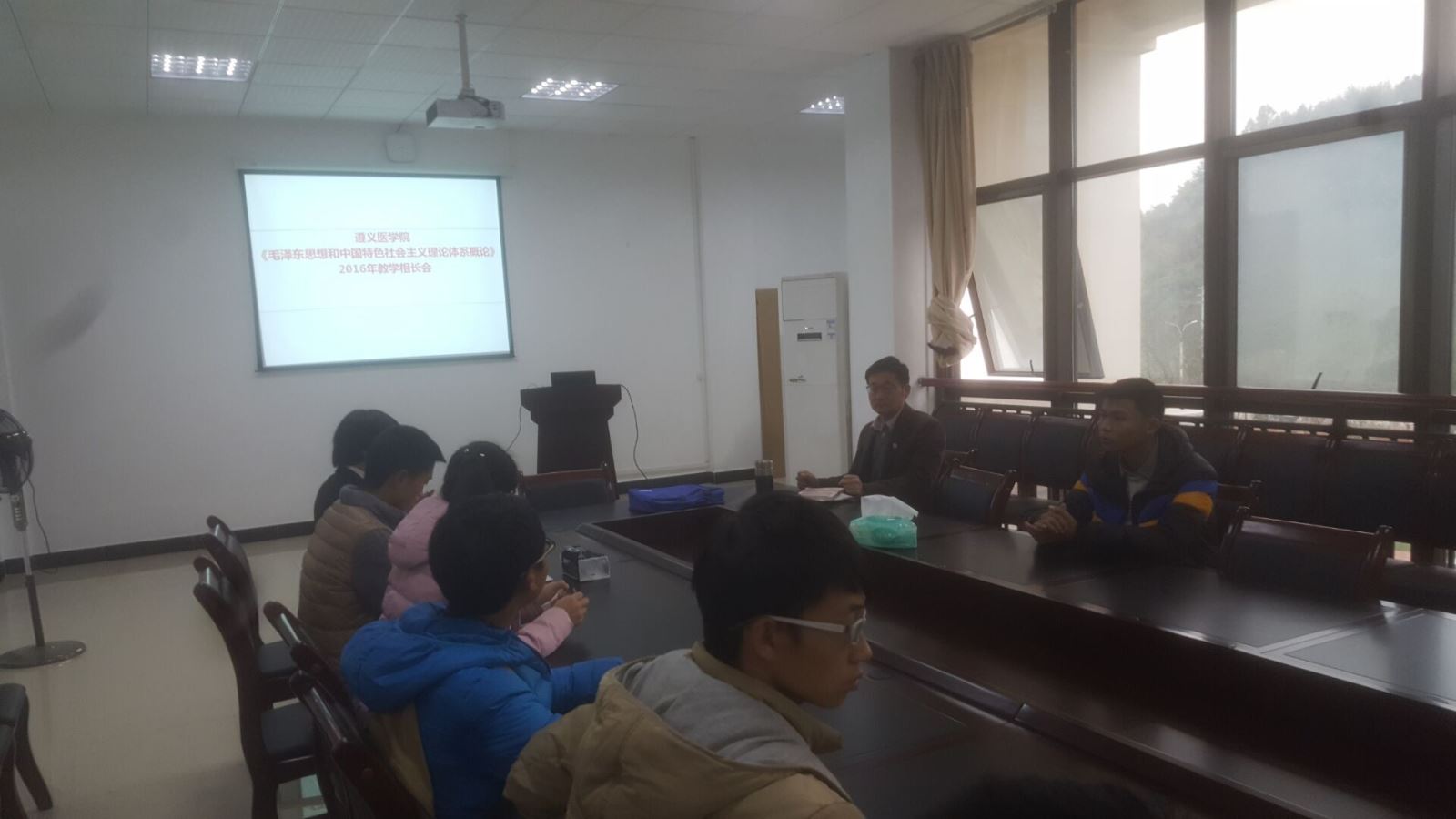 为了全面提高《毛泽东思想和中国特色社会主义理论体系概论》(以下简称“概论”)教研室教师教学质量,推动教学改革与创新,规范教学管理,保证和维护正常的教学秩序,确保教学质量稳步提高,根据公司教务处和人文社科公司的相关教学管理制度,本教研室于2016年11月14日星期一下午13:00在人文楼三层会议室召开了教学相长会,参加本次会议的有今天在新蒲校区上课的本教研室全体教师,以及2015级临床医学、口腔医学技术、护理学、商务英语等各个专业的20多名员工代表。