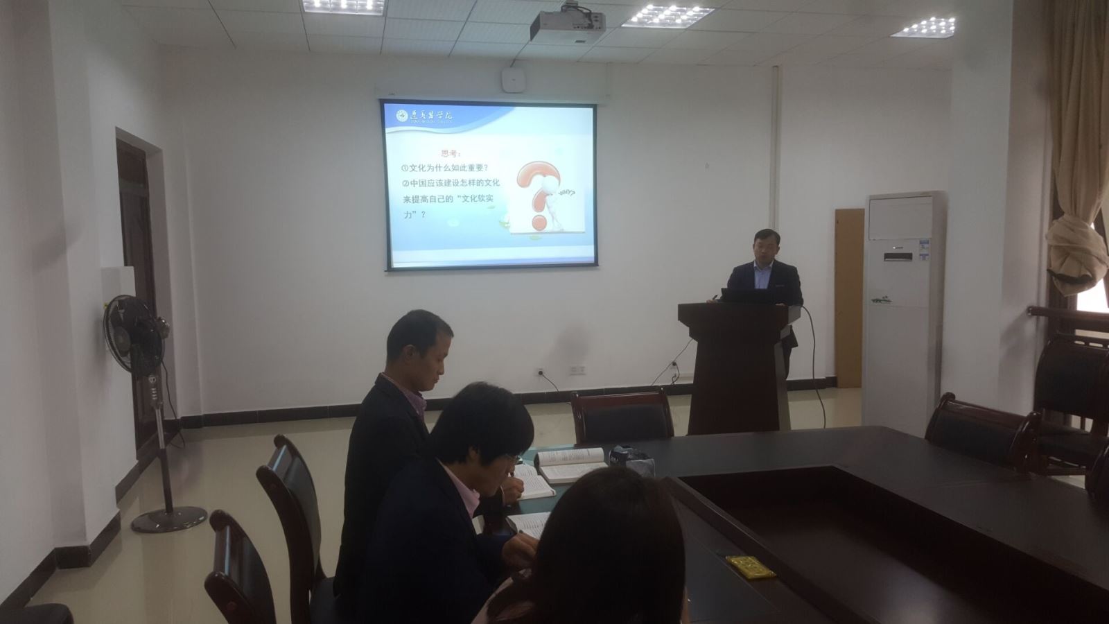 此次集体备课内容为《毛泽东思想和中国特色社会主义理论体系概论》课程第八章“建设中国特色社会主义总布局”:第三节“建设中国特色社会主义文化”。解璇老师首先从美国哈佛大学教授小约瑟夫·奈提出的“软实力”概念入手导入本专题的教学主题。小约瑟夫·奈指出,一个国家的综合国力既包括由经济、科技、军事实力等表现出来的硬实力,也包括以文化和意识形态吸引力体现出来的“软实力”,并认为,在信息时代,“软实力”正变得比以往更加突出和重要。自此以后,“文化软实力”一词在全球风靡,许多国家都将提升本国文化软实力纳入国家发展战略。由此,向员工提问:文化为什么如此重要?中国应该建设怎样的文化来提高自己的“文化软实力”?带着这两个问题,使员工能够积极主动地参与到本专题的学习中。其次,针对本专题的“坚持走中国特色社会主义文化发展道路”,在讲清文化的涵义及功能后,解璇老师分层次梳理了我们党在革命、建设和改革的各个历史时期对文化发展的探索历程,总结得出我们党在实践中走出了一条具有中国特色的文化发展道路,不仅丰富和发展了马克思主义文化理论,而且创造了具有中国特色的社会主义先进文化。在讲到社会主义核心价值观时,解璇老师从国家、社会、个人三个层面对社会主义核心价值观“二十四字方针”进行了具体的讲授,如“富强、民主”分别指向经济上的国富民强、政治上的人民民主,并结合当前的社会实例进行拓展,从而使员工能够更好地理论联系实际,全面掌握社会主义核心价值观的内容。