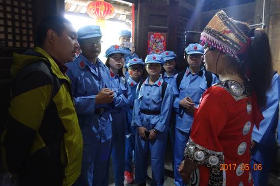 5月6日上午,参加活动的遵义医公司师生,在平正仡佬族乡工作人员的带领下,沿着当年红军走过的道路步行,体验红军当年的艰辛,一路上同学们还唱起了《映山红》等红色歌曲,缅怀红军先烈。在火烧坡,同学们进农户家认真观看当年红军长征经过该地时留在墙壁、房间门板上那些宣传我党民族政策、号召人民群众推翻国民党反动统治翻身作主的标语,听当地居民讲当年红军经过平正时和仡佬、苗、彝、汉等各族人民群众结下的鱼水深情。
