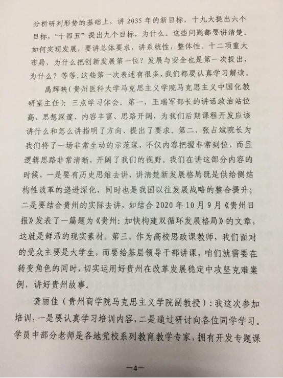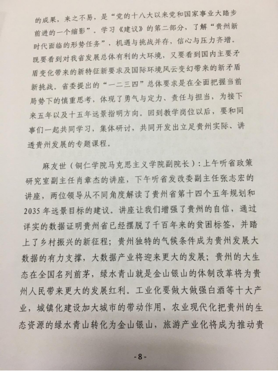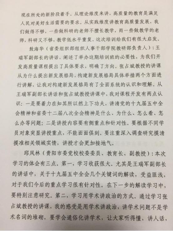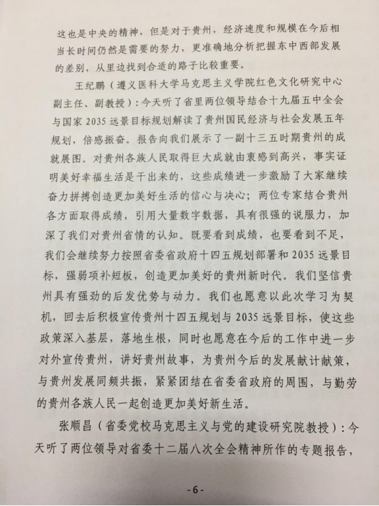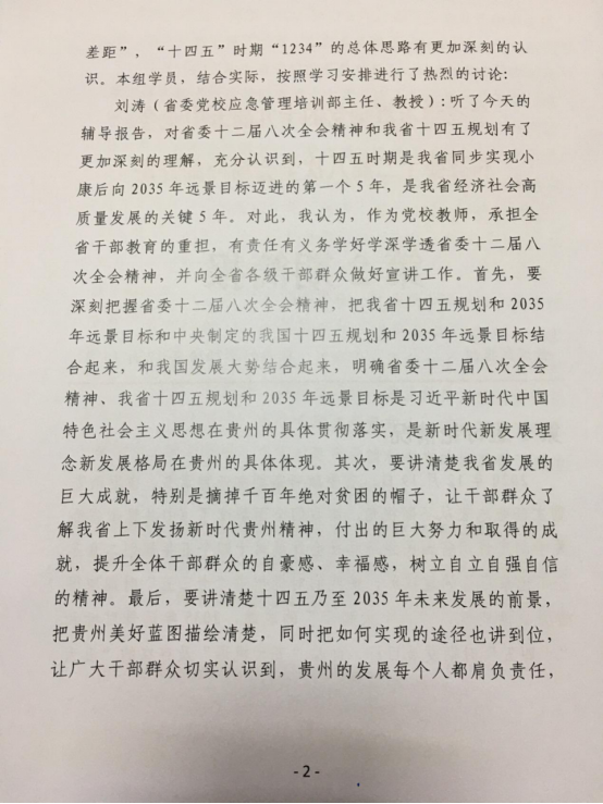 为深入学习贯彻党的十九届五中全会和省委十二届八次全会精神,围绕《中共中央关于制定国民经济和社会发展第十四个五年规划和二〇三五年远景目标的建议》《中国共产党第十九届中央委员会第五次全体会议公报》《中共贵州省委关于制定贵州省国民经济和社会发展第十四个五年规划和二〇三五年远景目标的建议》《中国共产党贵州省第十二届委员会第八次全体会议公报》等精神进行集中学习、集中研讨和集体备课,开发一批系统阐释党的十九届五中全会和省委十二届八次全会精神、“十四五”时期经济社会发展的课程,打造一支长期研究党的十九届五中全会和省委十二届八次全会精神、“十四五”时期经济社会发展的团队队伍,决定在省委党校举办1期学习贯彻党的十九届五中全会和省委十二届八次全会精神团队班。williamhill英国威廉希尔派出王纪鹏和周维明两位老师参加。