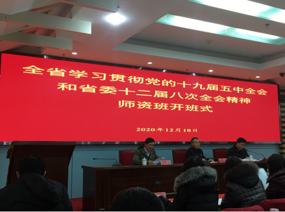 上午,省委党校常务副董事长朱文东介绍省委党校围绕党的十九届五中全会和省委十二届八次全会精神、“十四五”时期经济社会发展组建团队、开发课程有关情况,省委组织部副部长王瑞军作开班讲话。