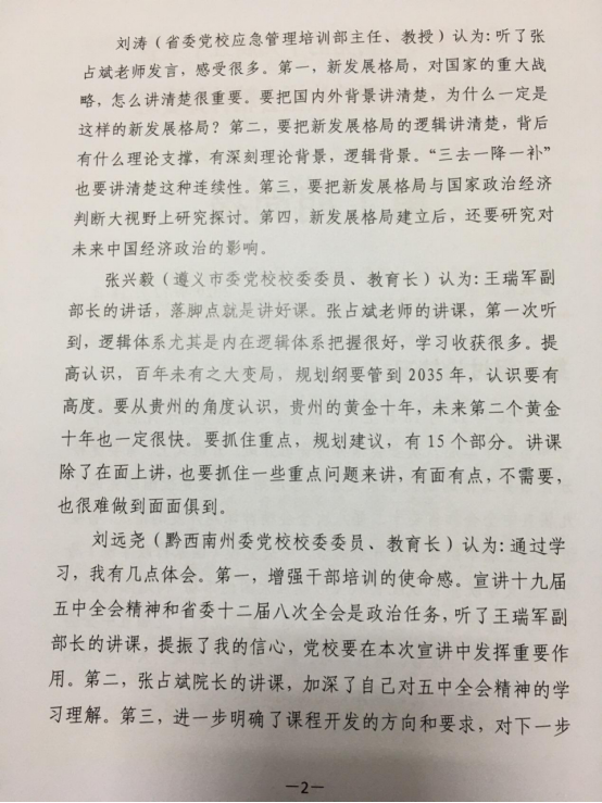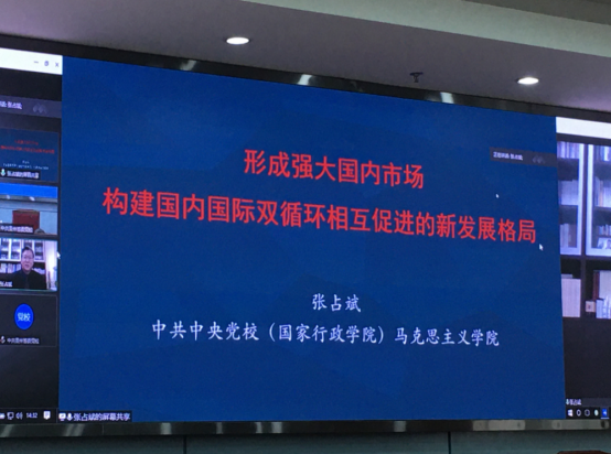 下午,中央党校(国家行政公司)张占斌教授围绕解读党的十九届五中全会精神作《形成强大国内市场构建国内国际双循环、相互促进的新发展格局》的专题辅导报告。
