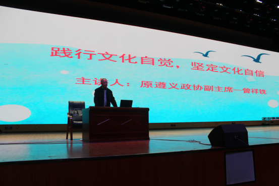 此次讲座特别邀请了曾祥铣老师主讲,曾祥铣老师是遵义市著名的学者和作家,曾任遵义市政协副主席,现任贵州省写作学会名誉会长、遵义市历史文化研究会第一、二任会长,遵义市长征学学会副会长、《遵义丛书》副主编,著有或主编《人文遵义》、《黔北薪火》、《遵义简史》、《抗战中的遵义》等著作。