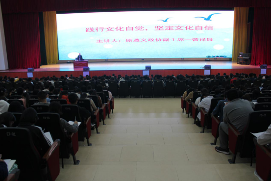 曾祥铣老师的讲座内容丰富,他从对文化自觉、文化自信的理解;传承优秀传统文化是当今中国的重大战略决策;传承红色文化,讲好遵义故事三个方面做了深入浅出的讲授。在讲座中详细向大家介绍了遵义发展历史中各个时期的情况,指出遵义以其开放、包容和创新的精神品格接受着先进文化和思想,在近代中国所有重要革命时期,遵义人都没有缺位。至今遵义形成了长征文化、茶文化、酒文化、仡佬文化、沙滩文化等各种形式的优秀传统文化。他期望同学们将自己置身于文化发展的进程之中,并为之承担力所能及的责任,认识到作为一个“遵义人”应当对遵义涌现出的优秀传统文化感到骄傲、自信,并主动去学习和传承优秀文化。